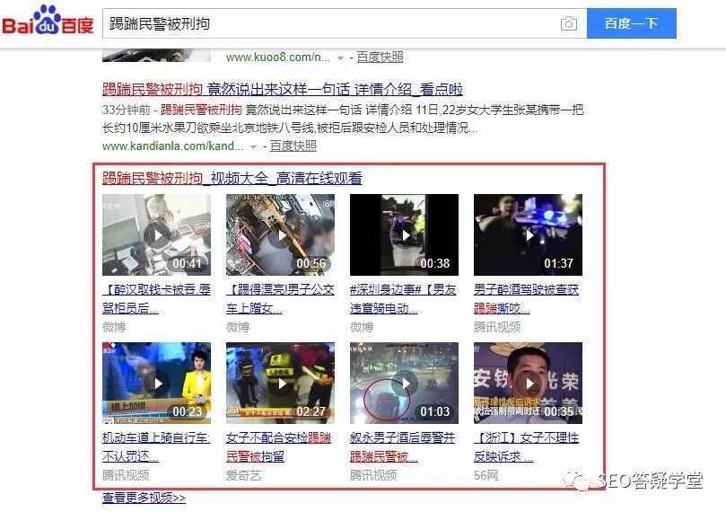 在百度当我们搜索热门新闻是,各位同学是否发现搜索结果页面已经有8个视频给占据大部分位置。