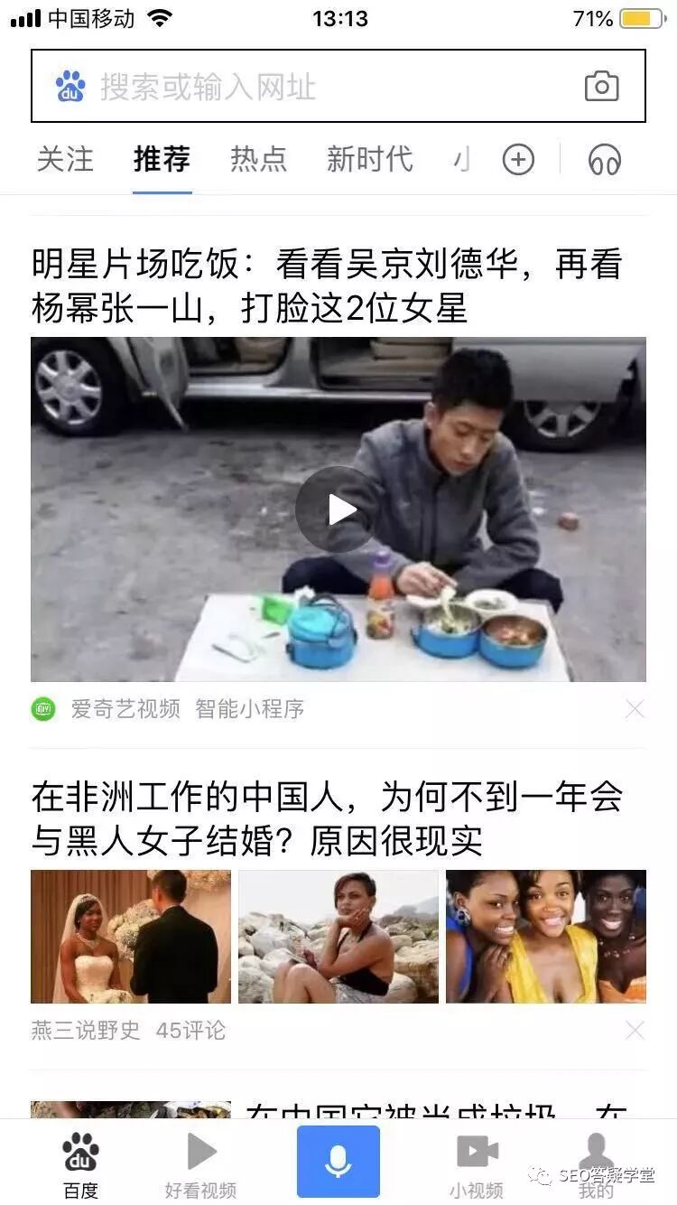 百度推出小程序,在移动端视频入口已经与爱奇艺合作,移动端信息了页面都是推荐爱奇艺视频。