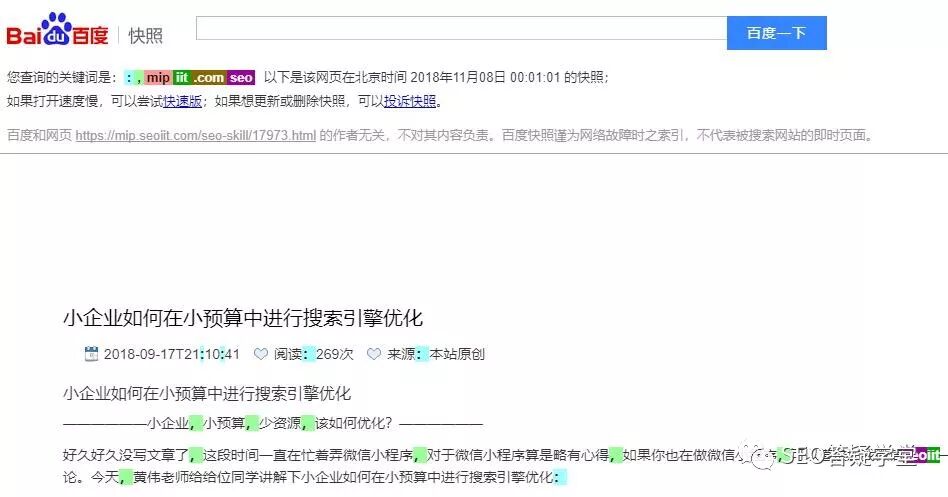 其实,百度也有移动优先索引的做法,只是很隐蔽,估计很少有人知道。百度推出了MIP和熊掌号,都是针对移动端,不知是否有同学发现,当你提交熊掌号内容后,该页面很快就被收录,也许很多同学到这步就结束,其实,各位同学在多做一步“查看百度快照”就可以发现,在PC端收录的其实是移动端的页面(你提交的页面URL)。