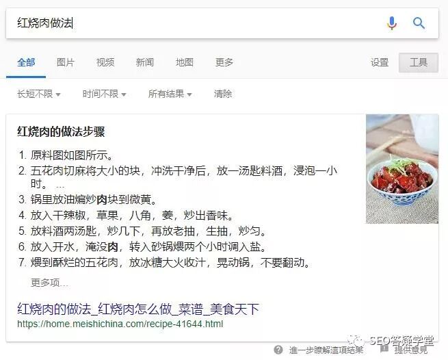 据有关统计,在Google中有11.3%的搜索结果现在都有精选片段。