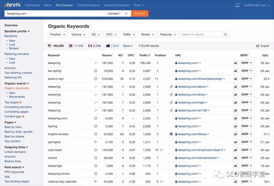如果是做英文站,可以使用Ahrefs网站进行查询;